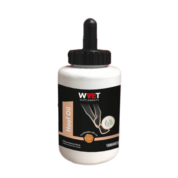 WVET hovolie med E-vitamin indeholder naturlige plejeolier af høj kvalitet. Hovolien trænger ind i hoven uden at efterlade rester. Den specielle kombination af aktive ingredienser kan hjælpe med at regenererer hovhornet og udtørrede hornområder. Hovolien hjælper med at tilføre fugt, elasticiteten bevares og hoven beskyttes og styrkes. WVET hovolie er derfor særlig velegnet til daglig pleje.